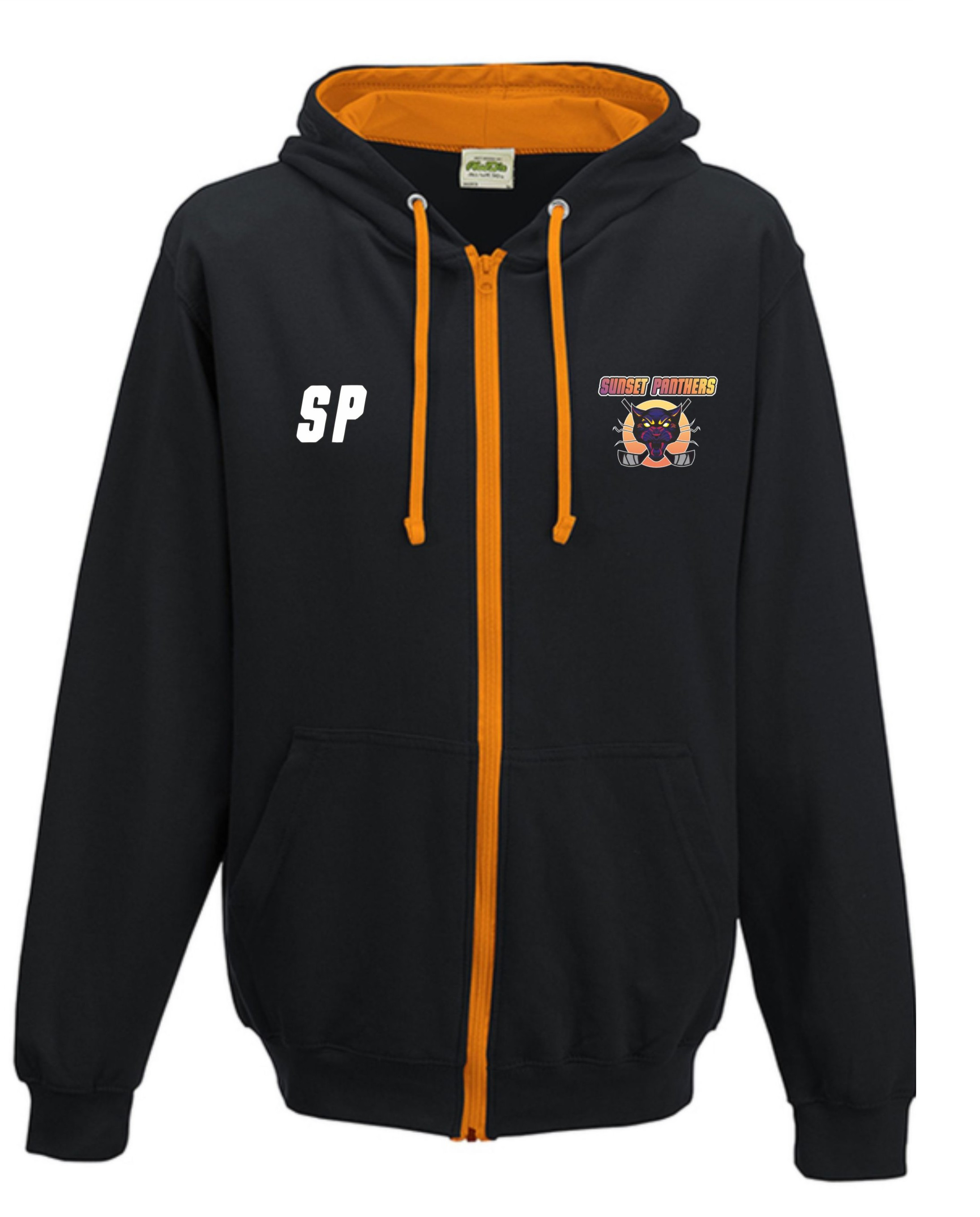 Sweat zippé contrasté orange avec logo club sur le cœur et initiales en anti-coeur